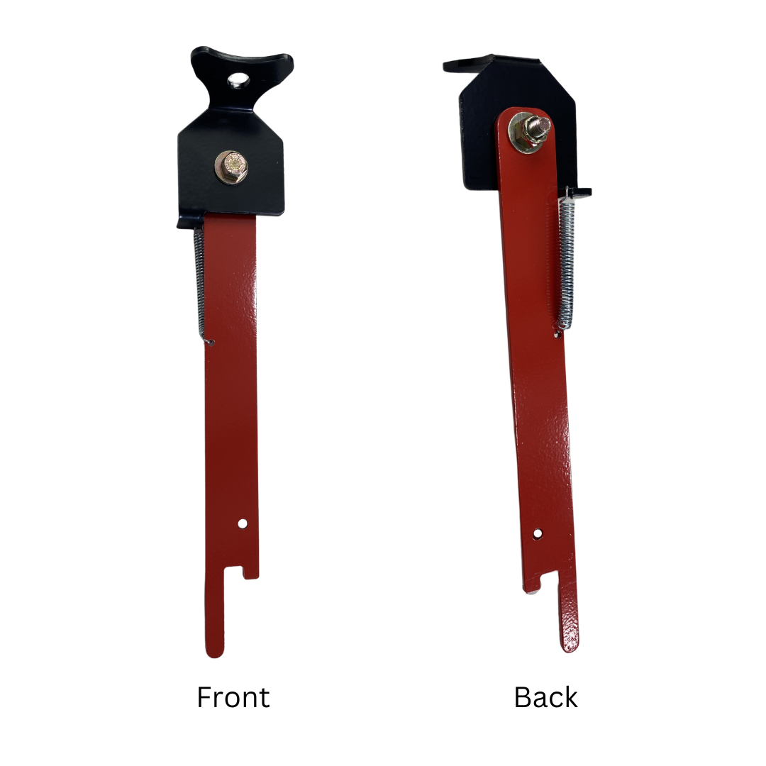 - When re-installing the bolt, before it is fully tightened, make sure the “V” portion of the mounting bracket is rotated/positioned to fully seat into the pocket of the housing. Tighten the bolt back up. The red arm and entire assembly should line up like the photo when tightened.